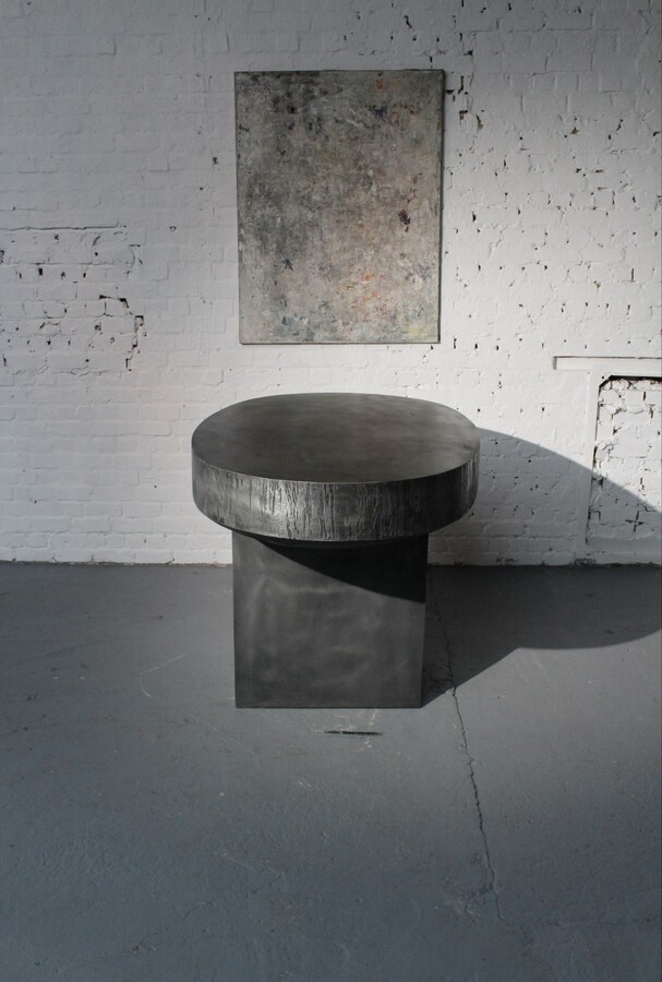 large console table by the Belgian sculptor Roger Bonduel (1930-2019) in acid-etched and patinated steel