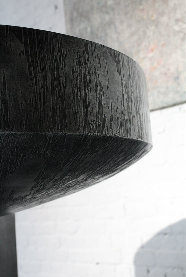 Large console table by the Belgian sculptor Roger Bonduel (1930-2019) in acid-etched and patinated steel. From 1961 to 1966, Roger Bonduel taught visual art at the Academy of Fine Arts in Bruges. Bonduel became best known for its sculptures, furniture, and bas-reliefs. He used nickel, copper, steel, silver, brass and bronze. He played an important role in the revival of religious art. Dimensions L139 x d91 X H90cm