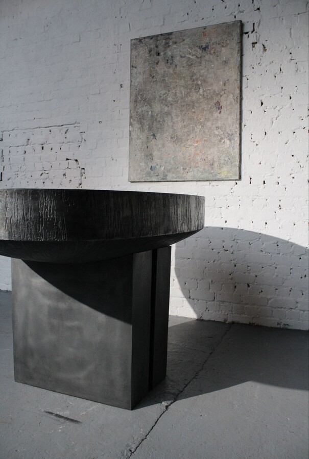 Large console table by the Belgian sculptor Roger Bonduel (1930-2019) in acid-etched and patinated steel. From 1961 to 1966, Roger Bonduel taught visual art at the Academy of Fine Arts in Bruges. Bonduel became best known for its sculptures, furniture, and bas-reliefs. He used nickel, copper, steel, silver, brass and bronze. He played an important role in the revival of religious art. Dimensions L139 x d91 X H90cm