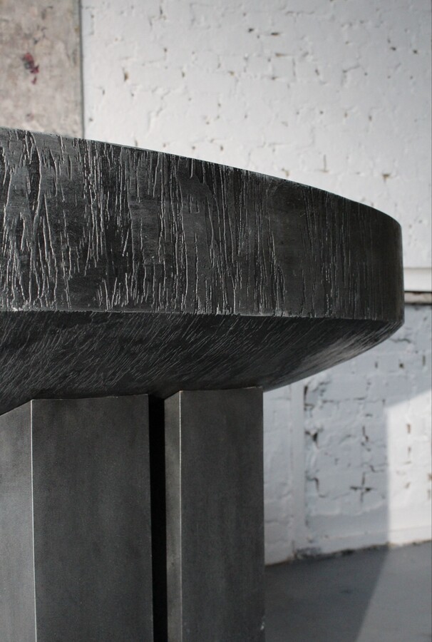 large console table by the Belgian sculptor Roger Bonduel (1930-2019) in acid-etched and patinated steel