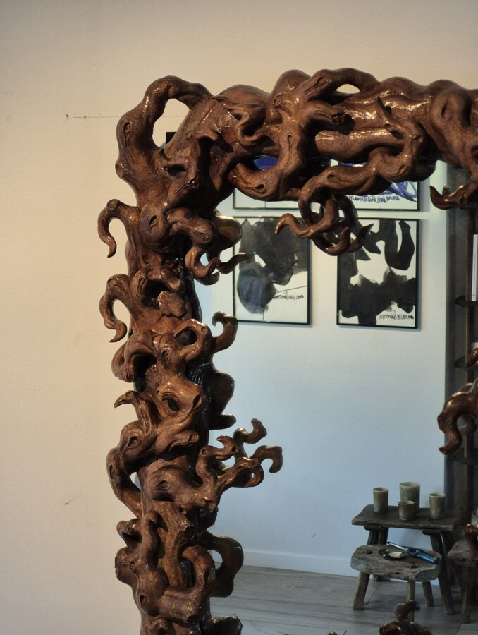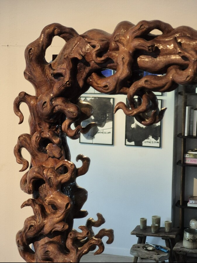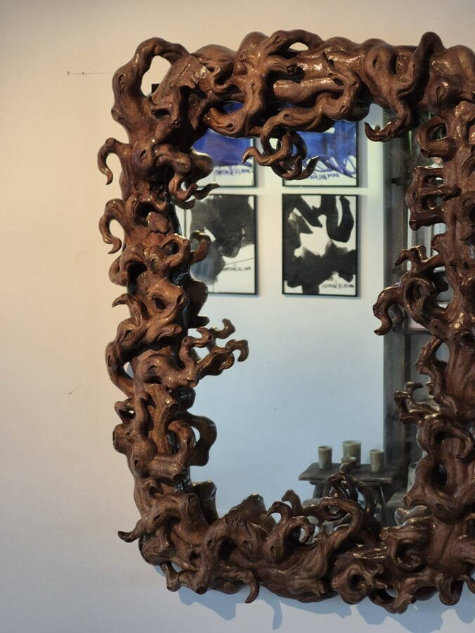 Mirror (size 50x70) surrounded by a frame in mangrove root.